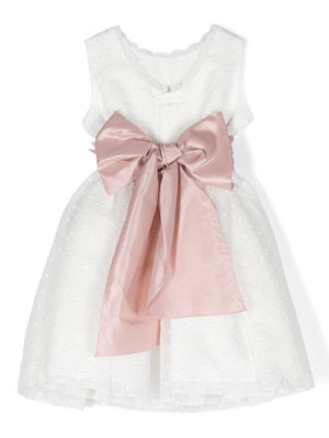 Vestido corto blanco en tul bordado y plumeti