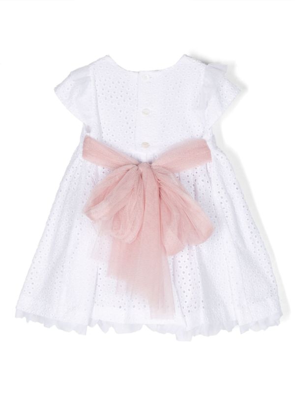 Vestido de algodón con volantes de tul y lazo rosa (Amaya)