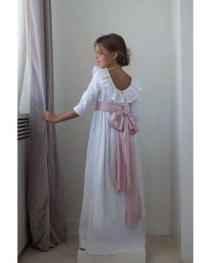 Vestido de comunión Plumetti Blanco Escote Espalda con manga larla