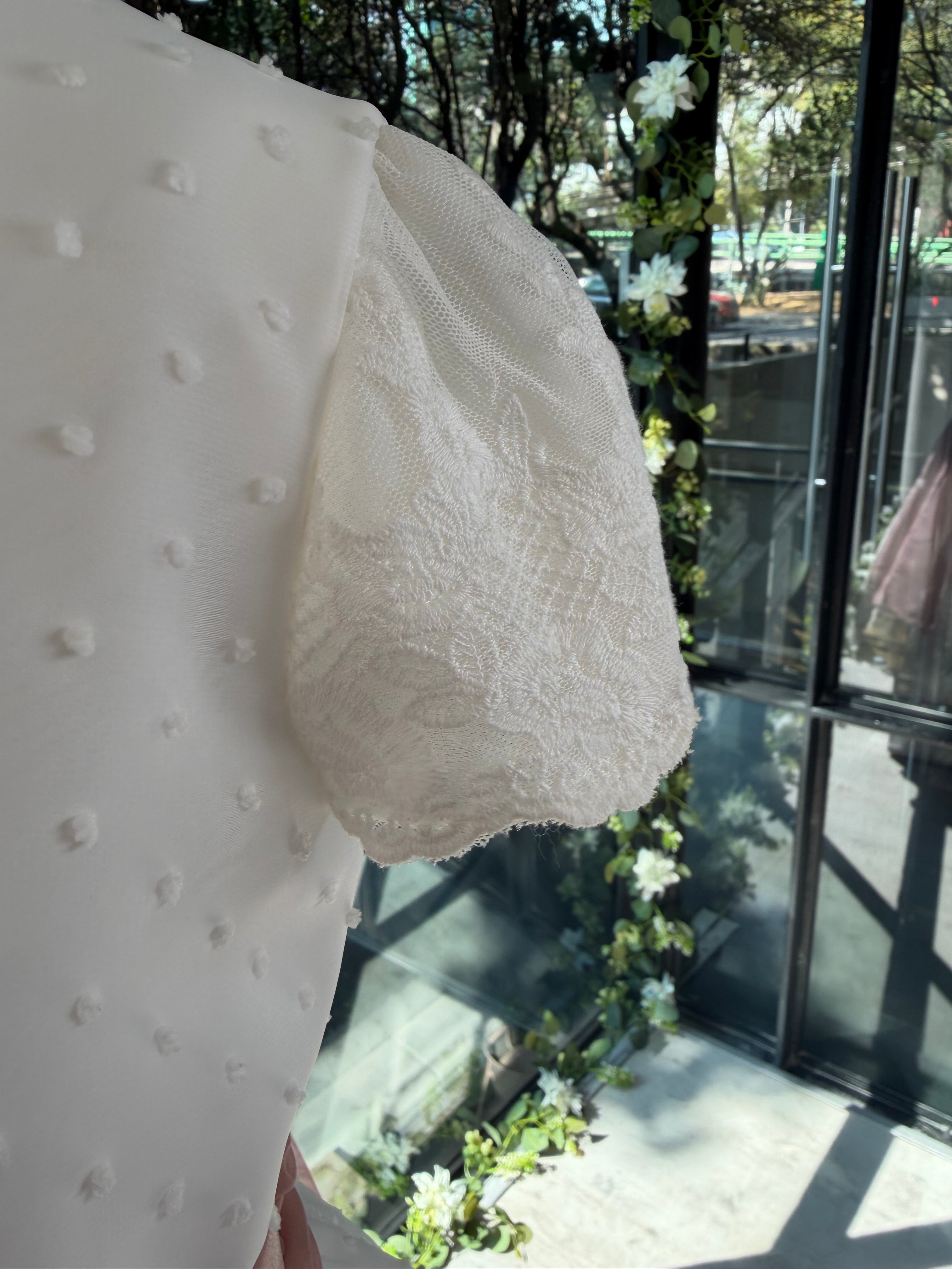 Vestido blanco con plumetti y lazada trasera