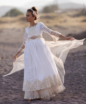 Vestido de comunión largo blanco con encaje beige ARENA - marca Mon Air