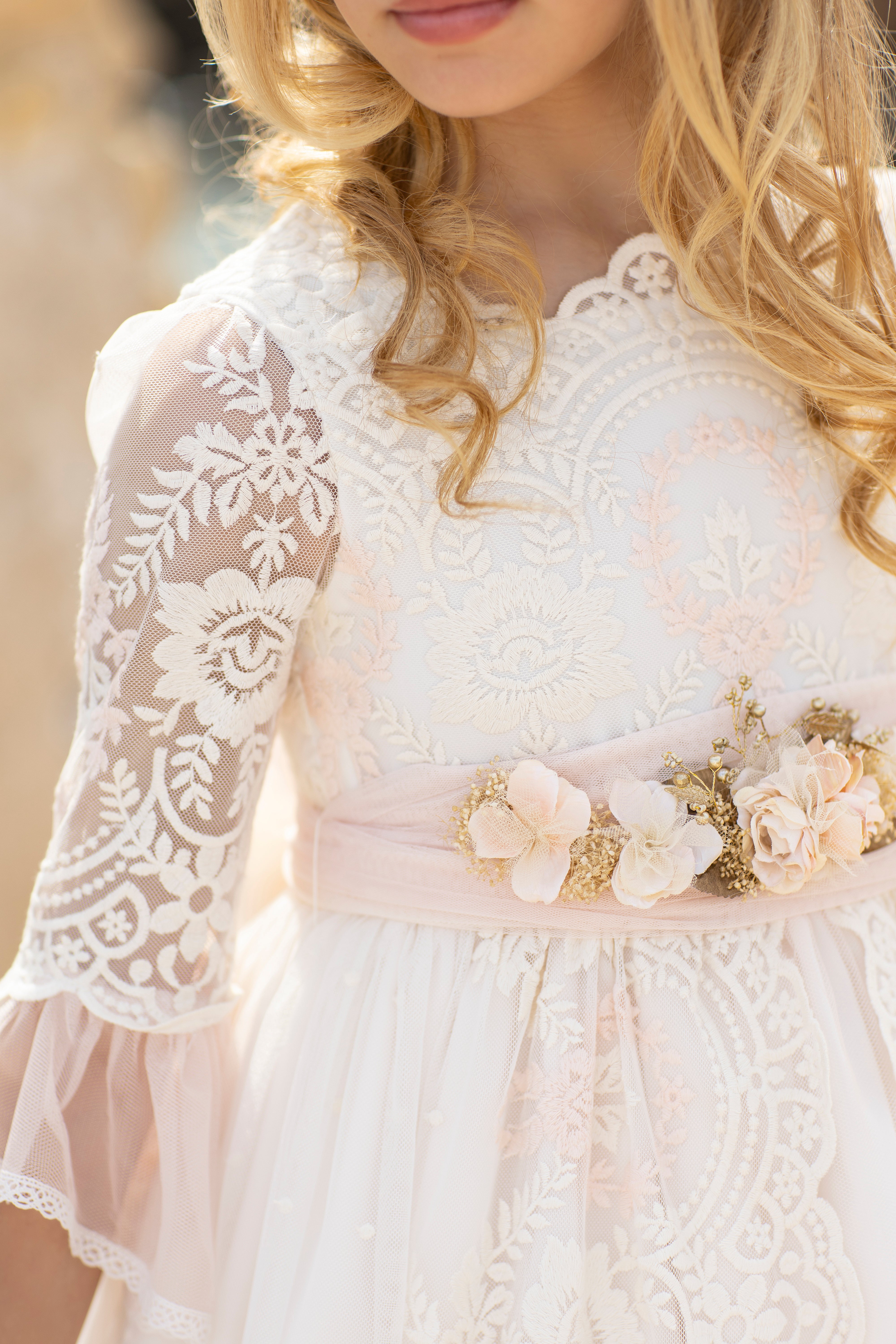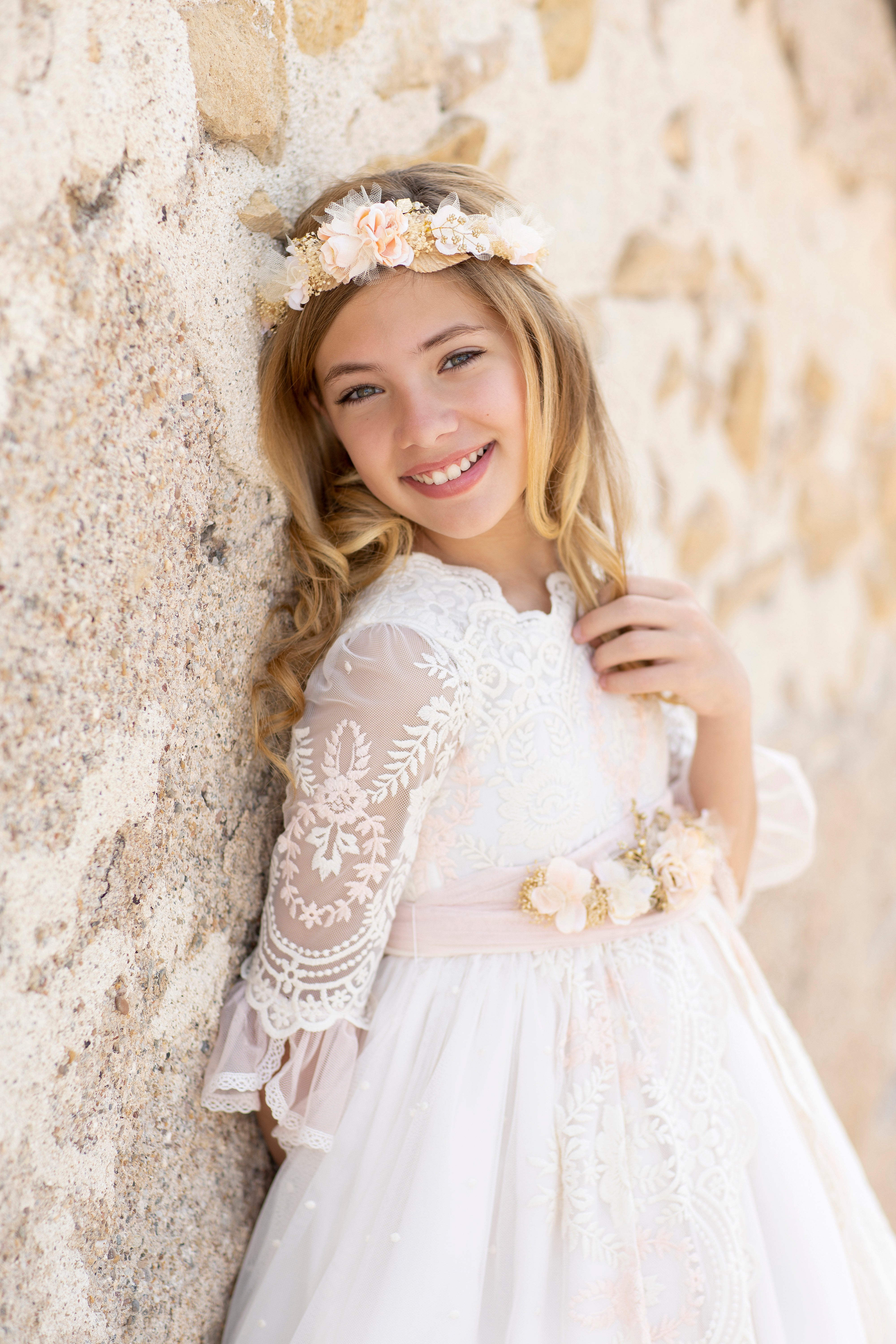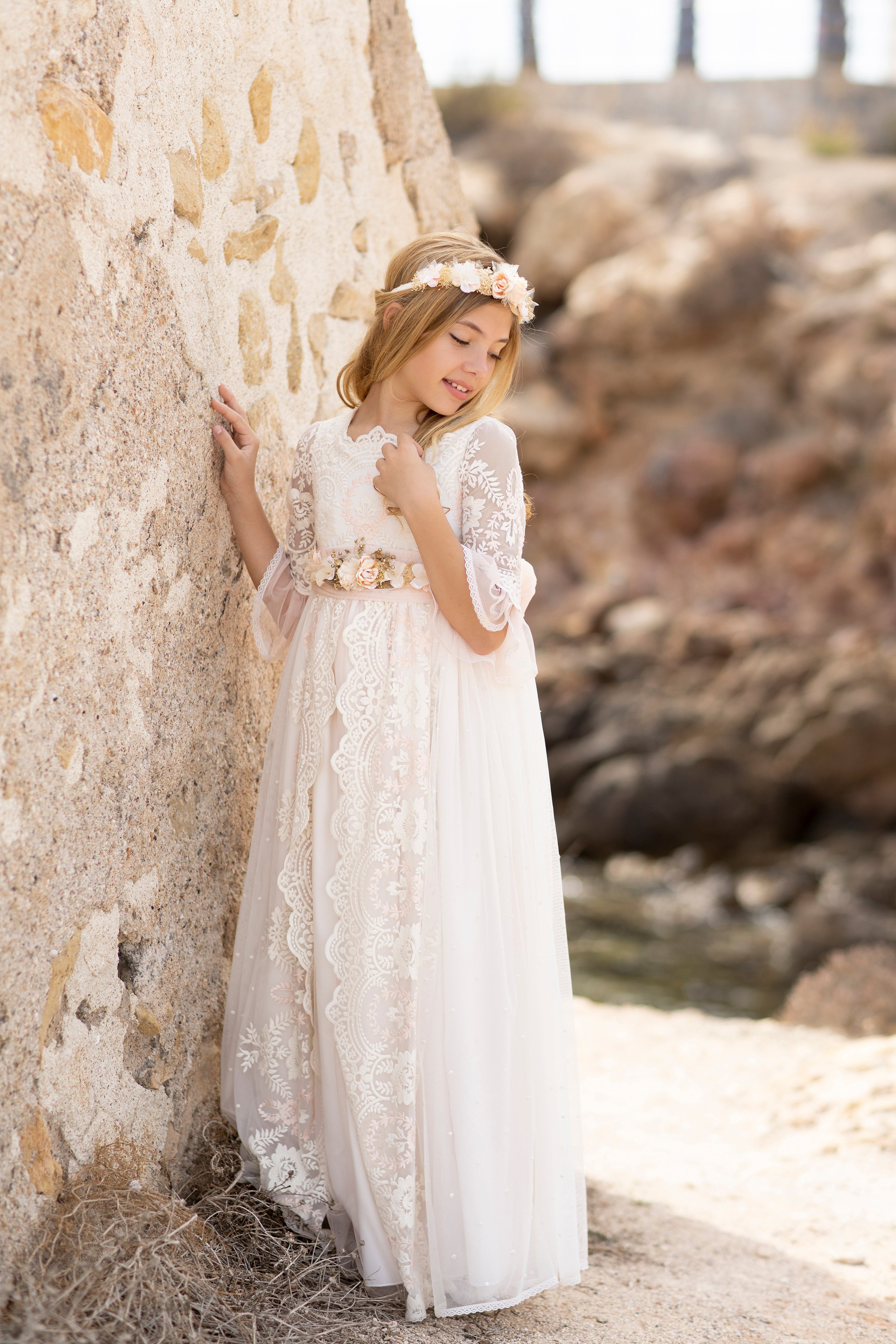 Vestido largo blanco para comunión modelo ALINA - marca Alhuka