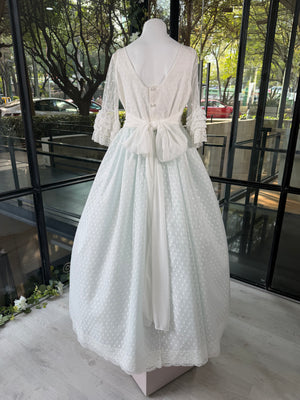 Vestido de comunión plumeti bicolor con encaje y detalles florales