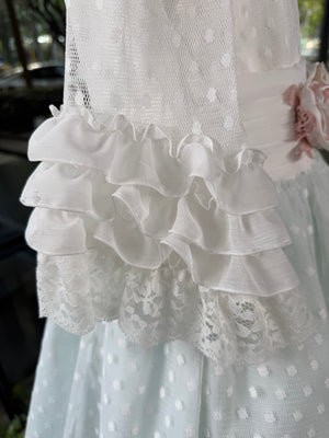 - Falda de tul plumetti blanco y satén celeste.