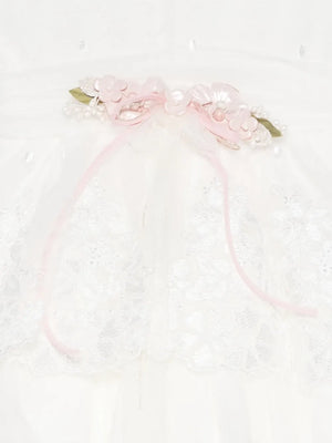 - Lazo en la cintura en rosa y blanco con flores delanteras.