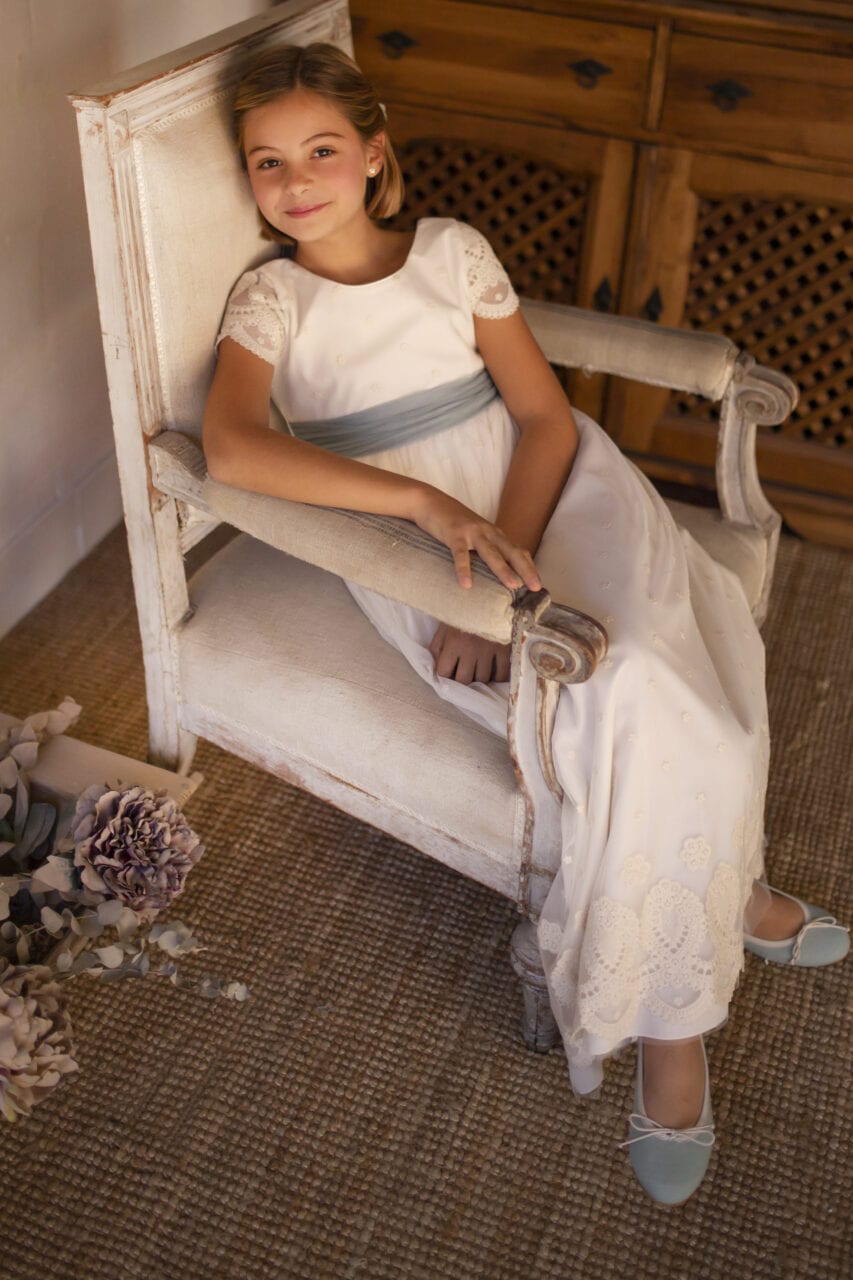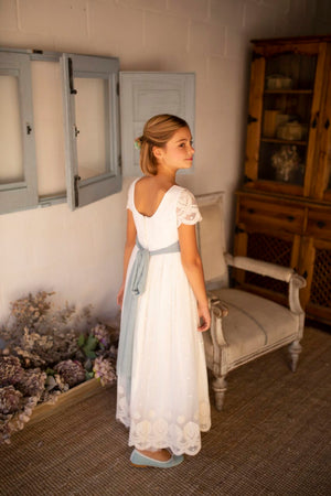 Vestido blanco con bordado crudo para comunión - LUNA - marca Coordinanos