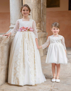 Vestido tono marfil decorado con bordados para bautizo - ROSALIE - marca Alhuka