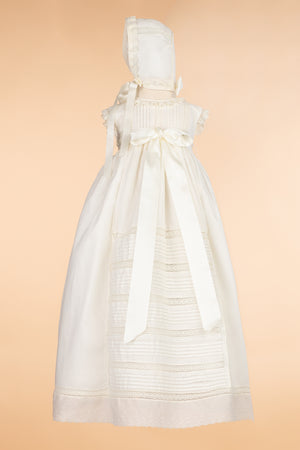 Vestido para bautizo estilo faldón (ropón) crudo con gorro - CATALINA - marca Belan