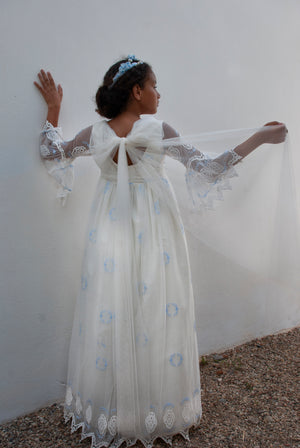 Vestido de comunión largo blanco con encaje azul CARACOLA - marca Mon Air